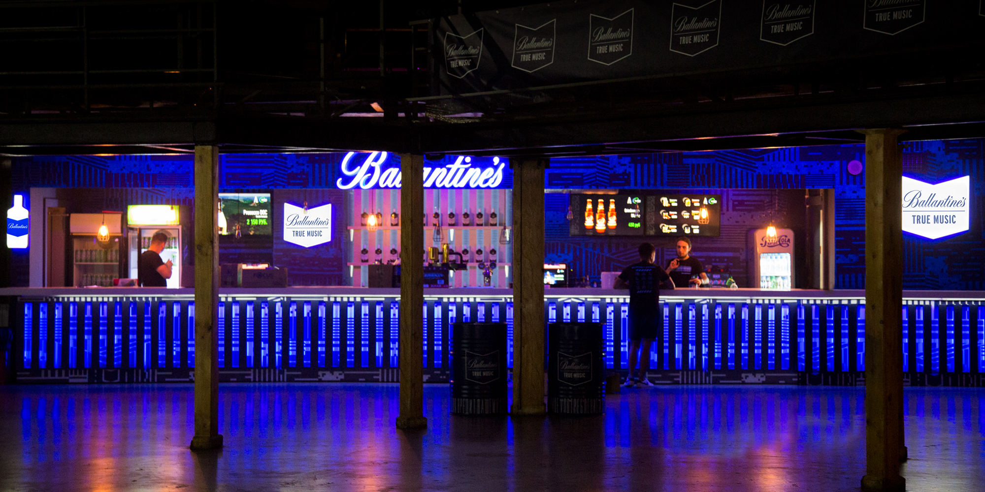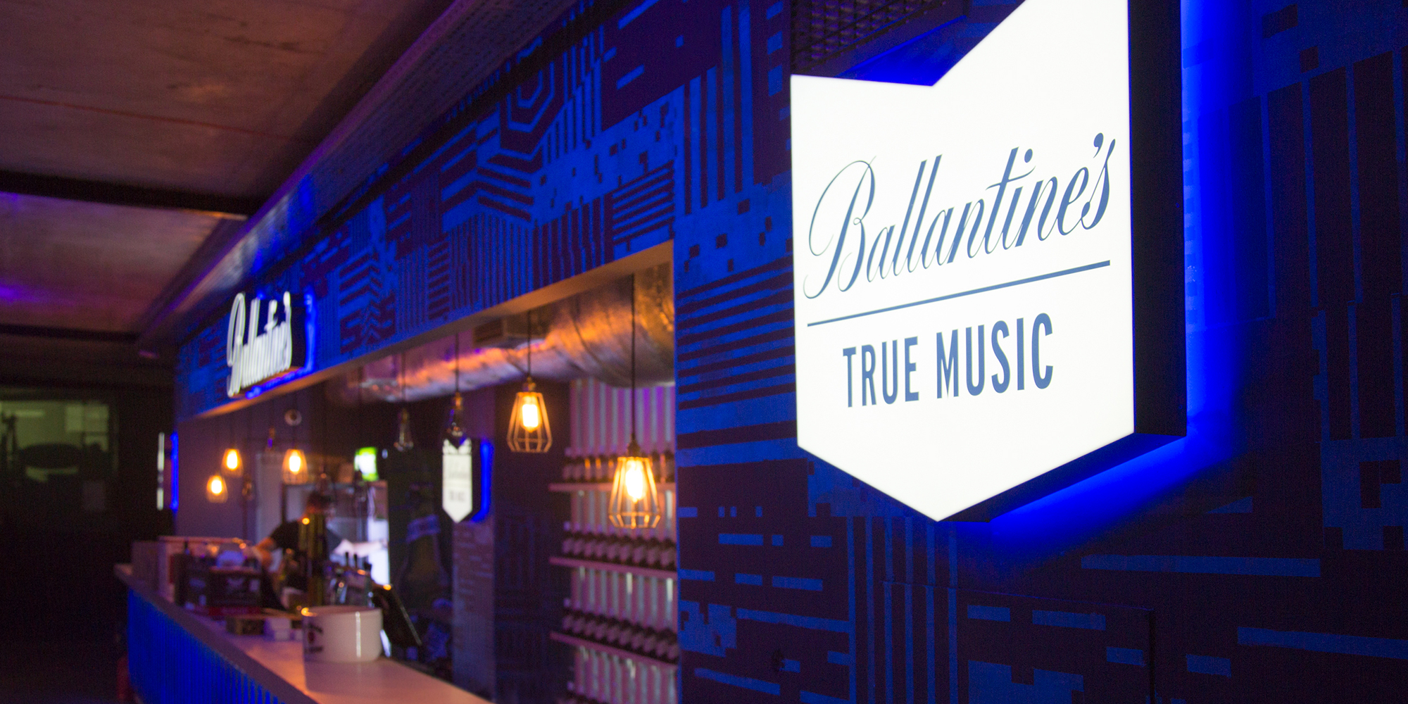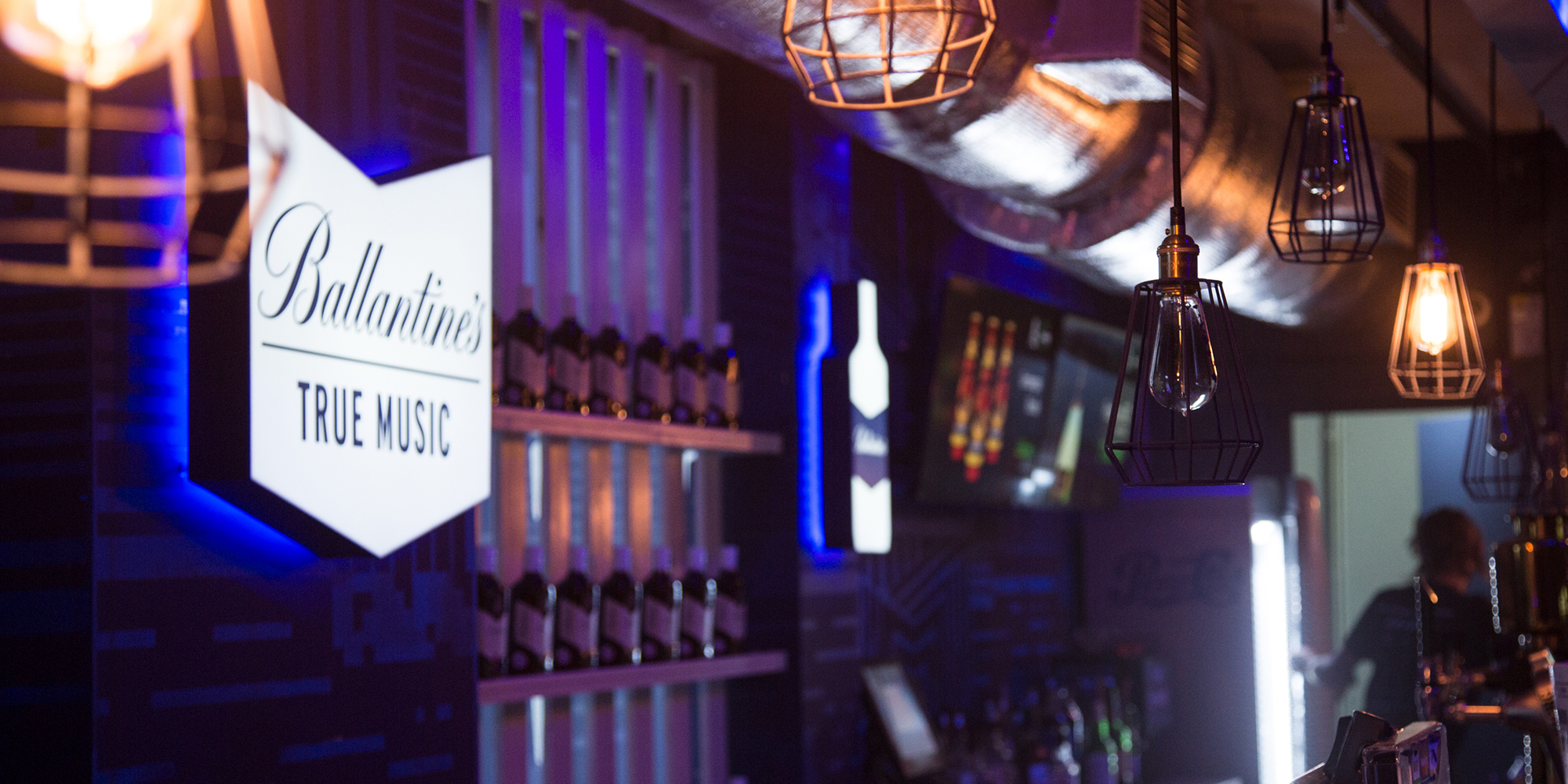 Разработать key visual для программы True music и реализовать его в оформлении пространства бара Ballantine’s.