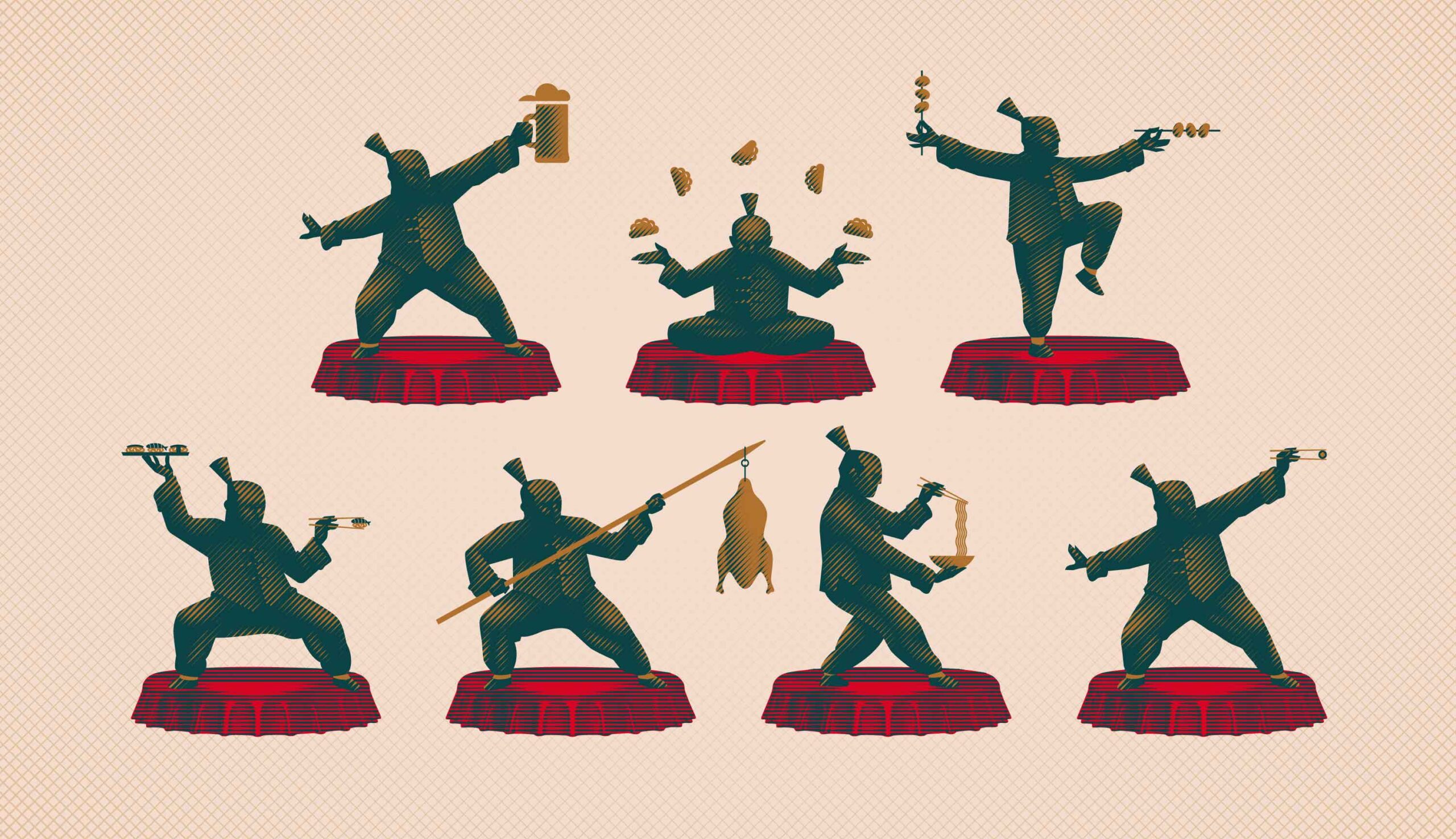 Создать айдентику для ресторана азиатской кухни с собственной пивоварней. В основе — сочетание двух миров: вкусы Азии и искусство варки пива.