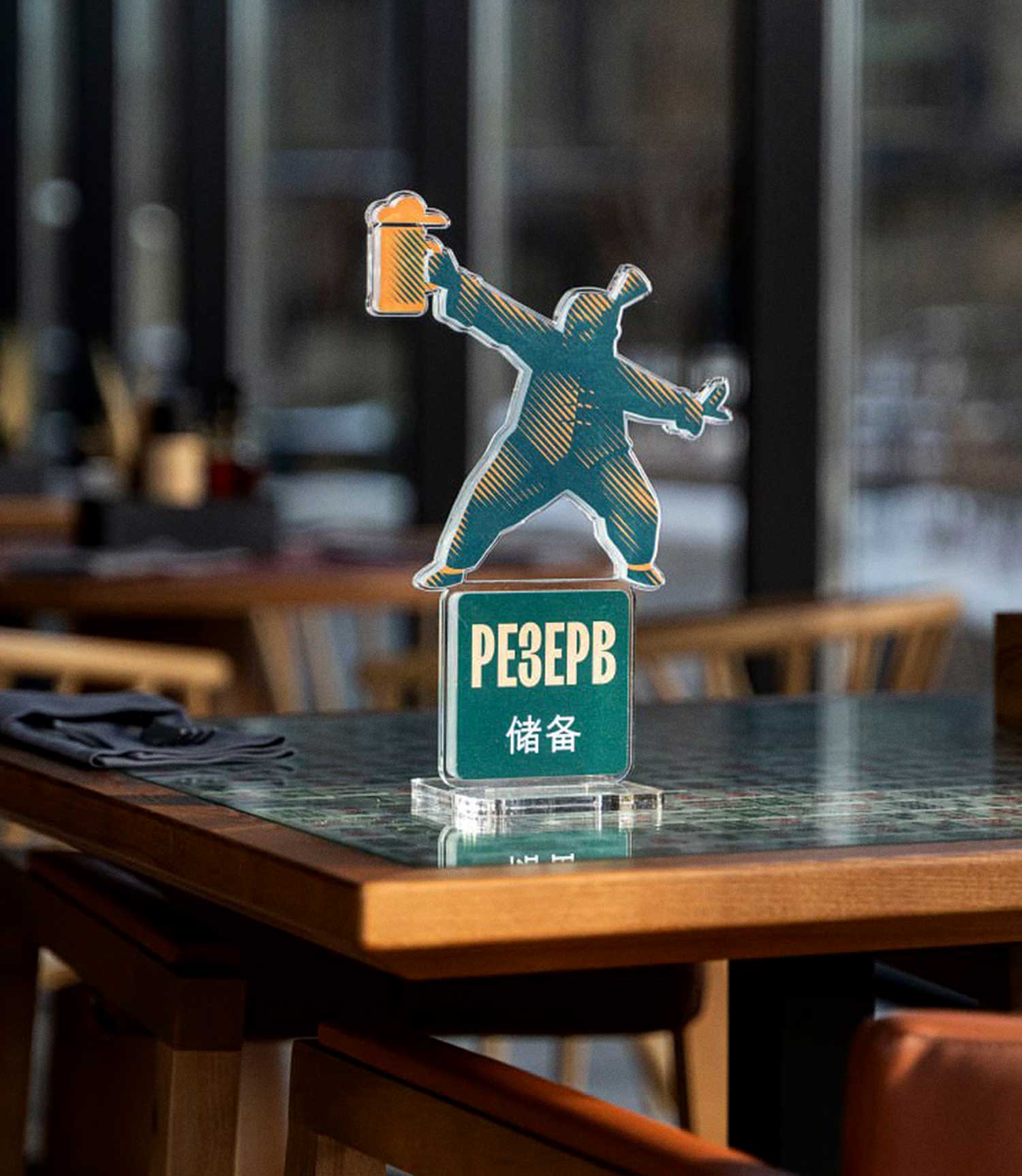 Маскотом айдентики стал харизматичный шеф Ли, стилизованный под мастера восточных единоборств. Он стоит на крышке от бутылки пива, словно на татами — ироничный штрих, который делает образ ещё оригинальнее.