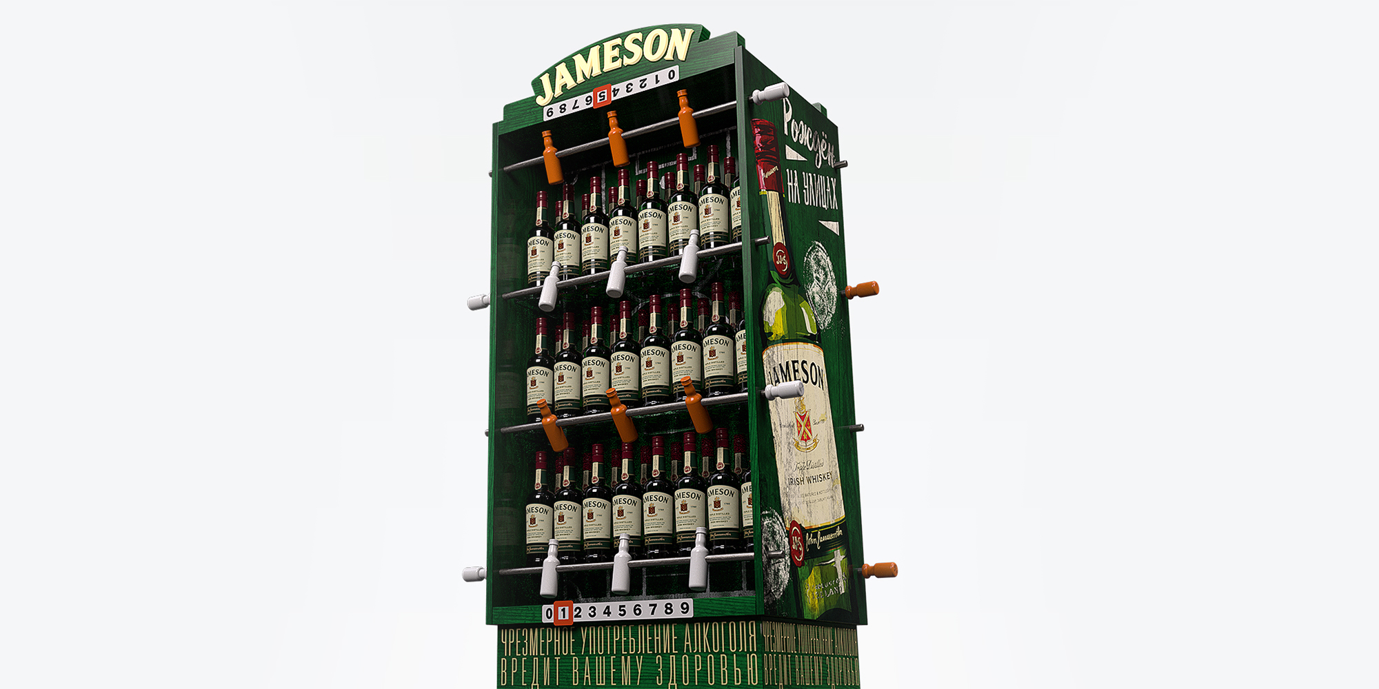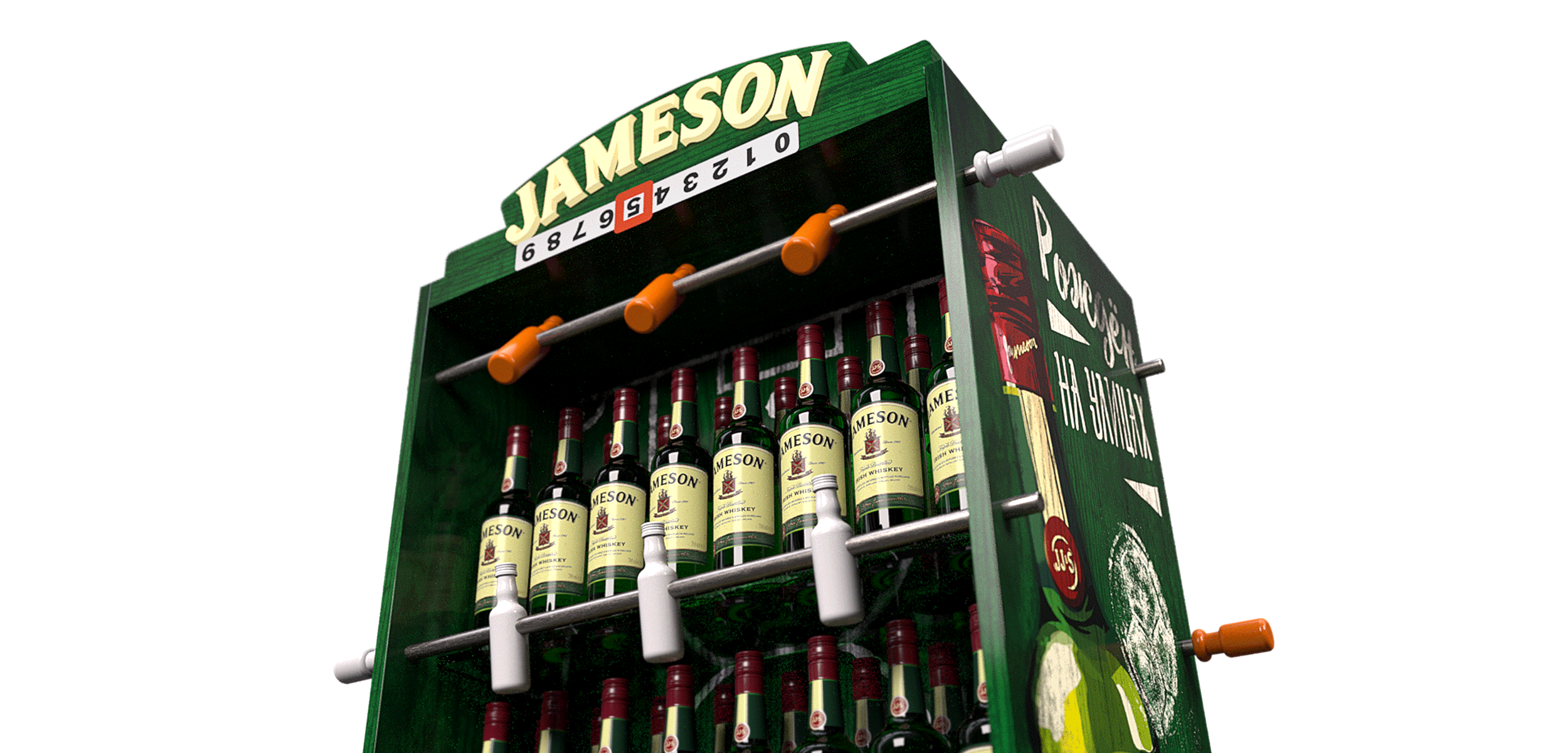 Конструкции с интерактивным элементом, отражающие бунтарский дух Jameson. Если футбол — то кикер, чтобы участие — без ограничений, болельщики — повсюду, а побеждает — дружба.