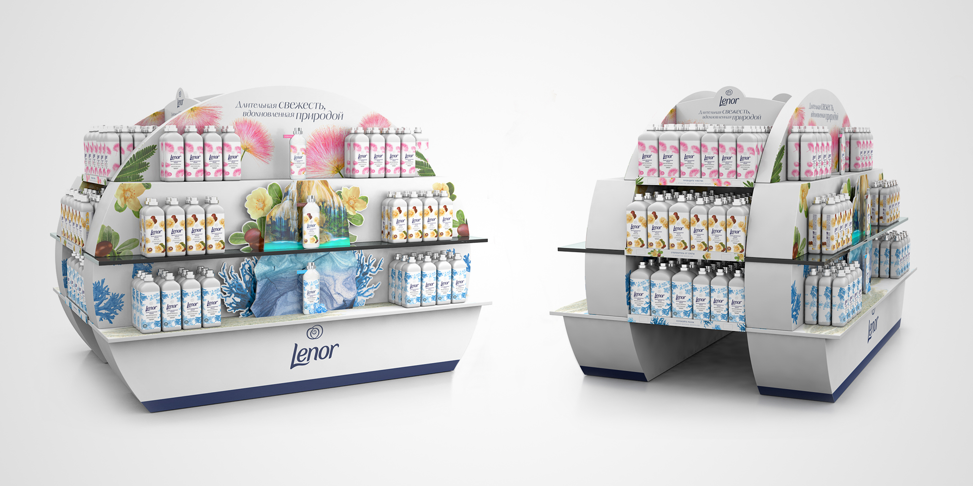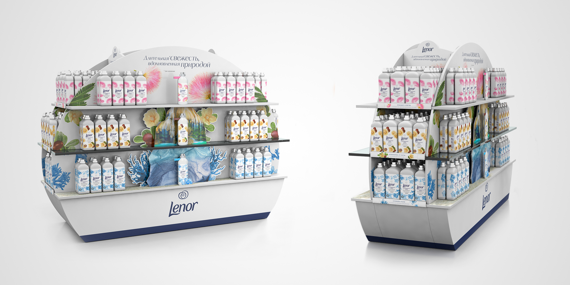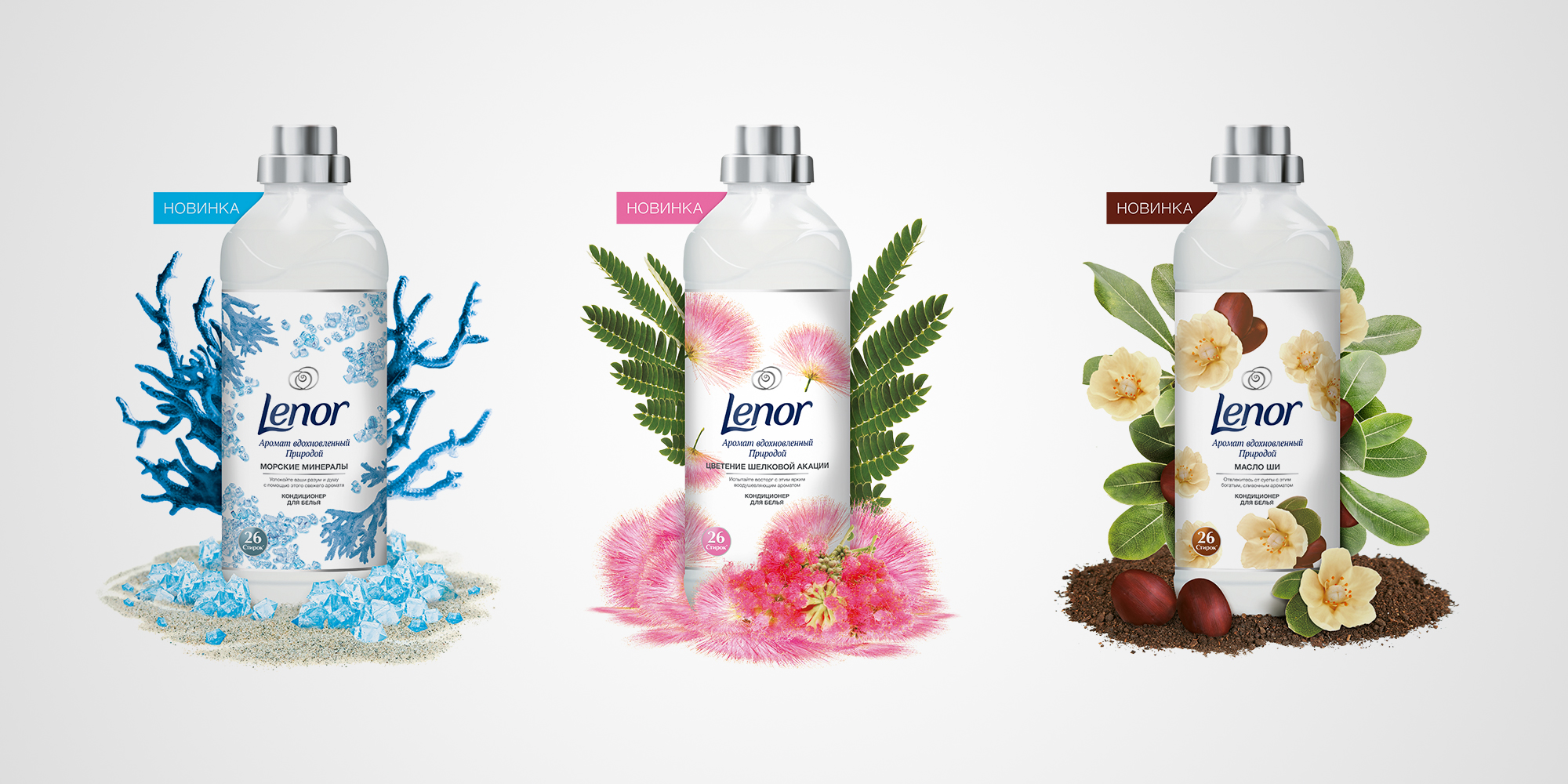 Создать ритейл материалы для новой коллекции природных ароматов Lenor Naturals.