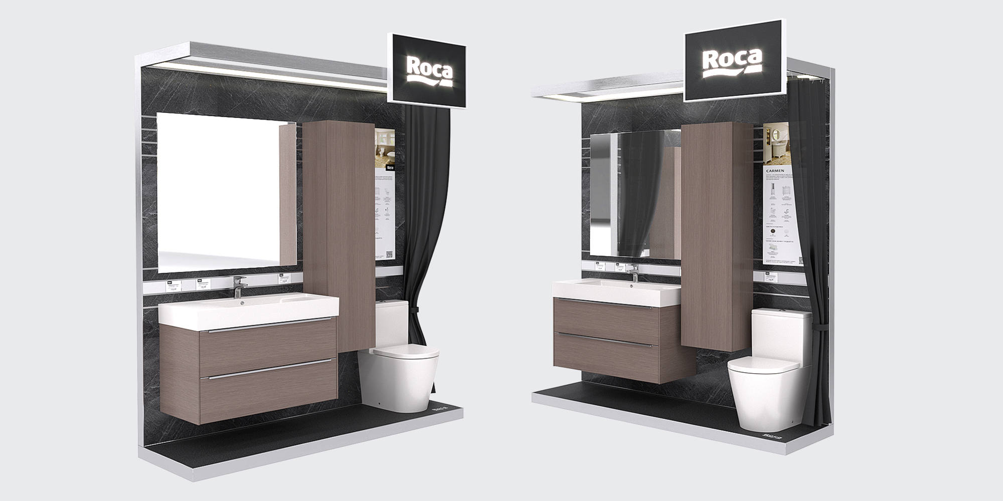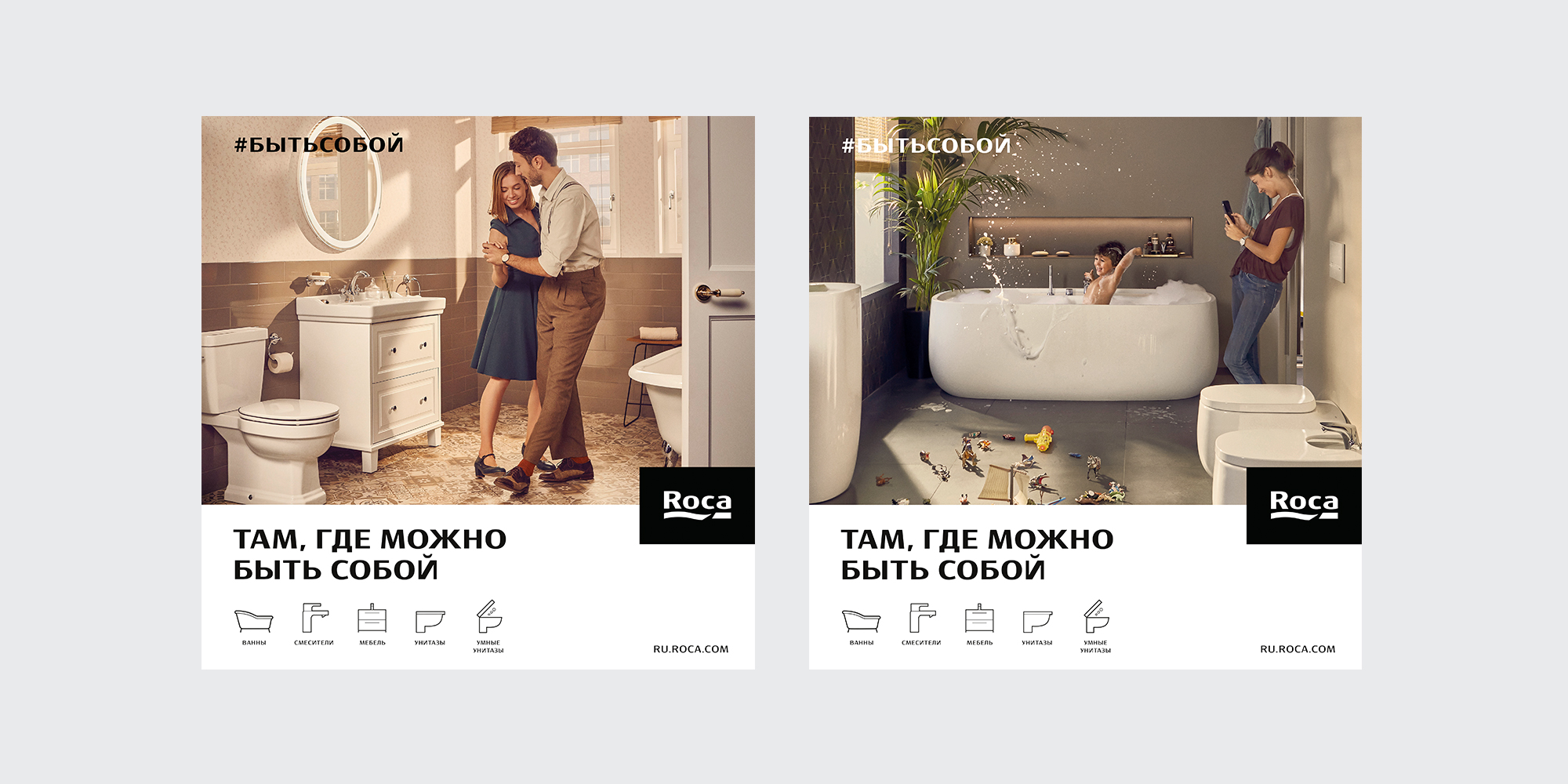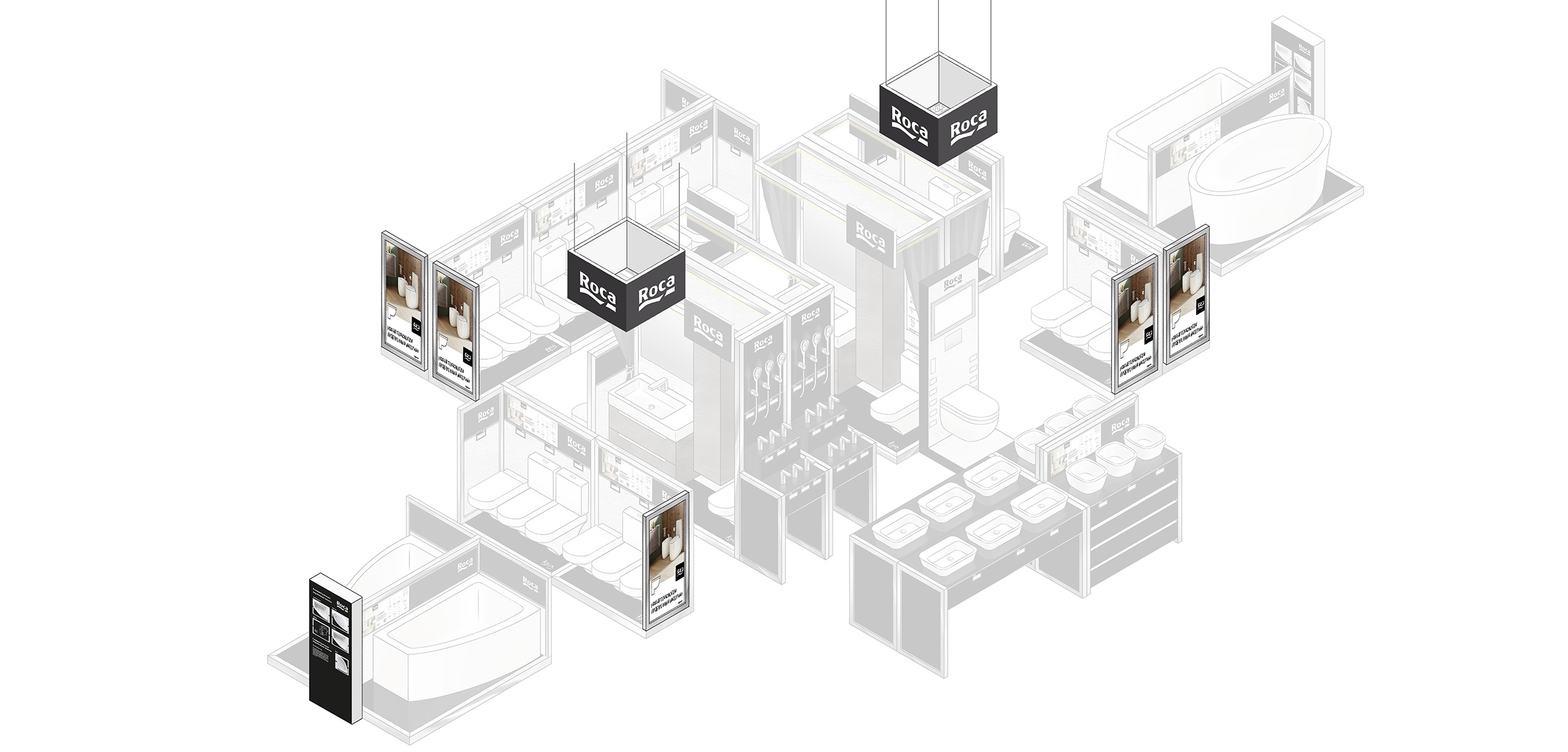 Модульная система оформления, основанная на стандартизированных демо-блоках. Каждый блок под свой тип продукта — раковины, ванны, мебель, фаянс — и оформлен в фирменном черном, в сочетании с благородными текстурами дерева и камня.