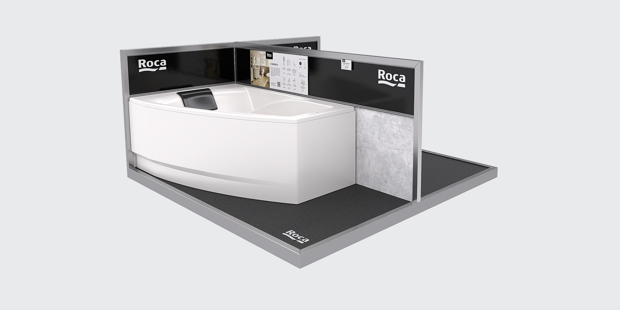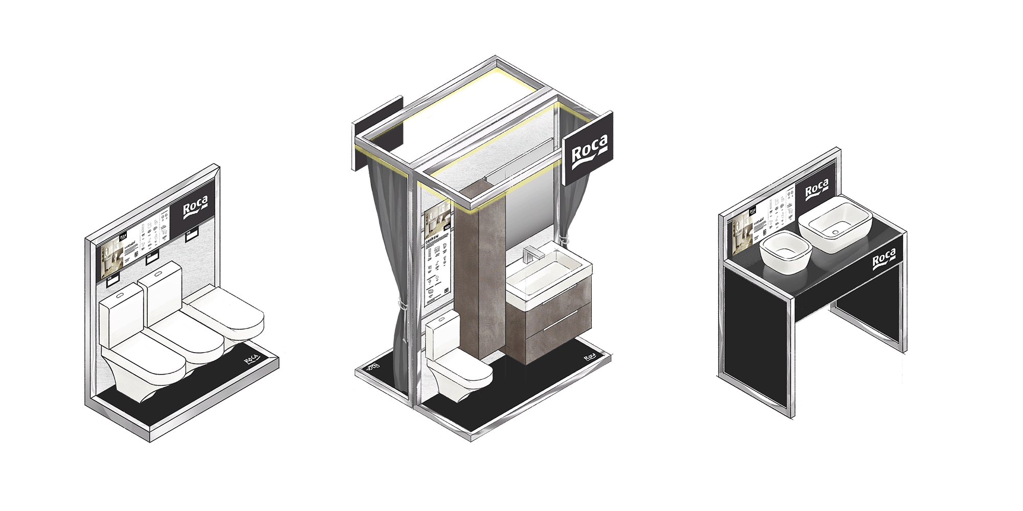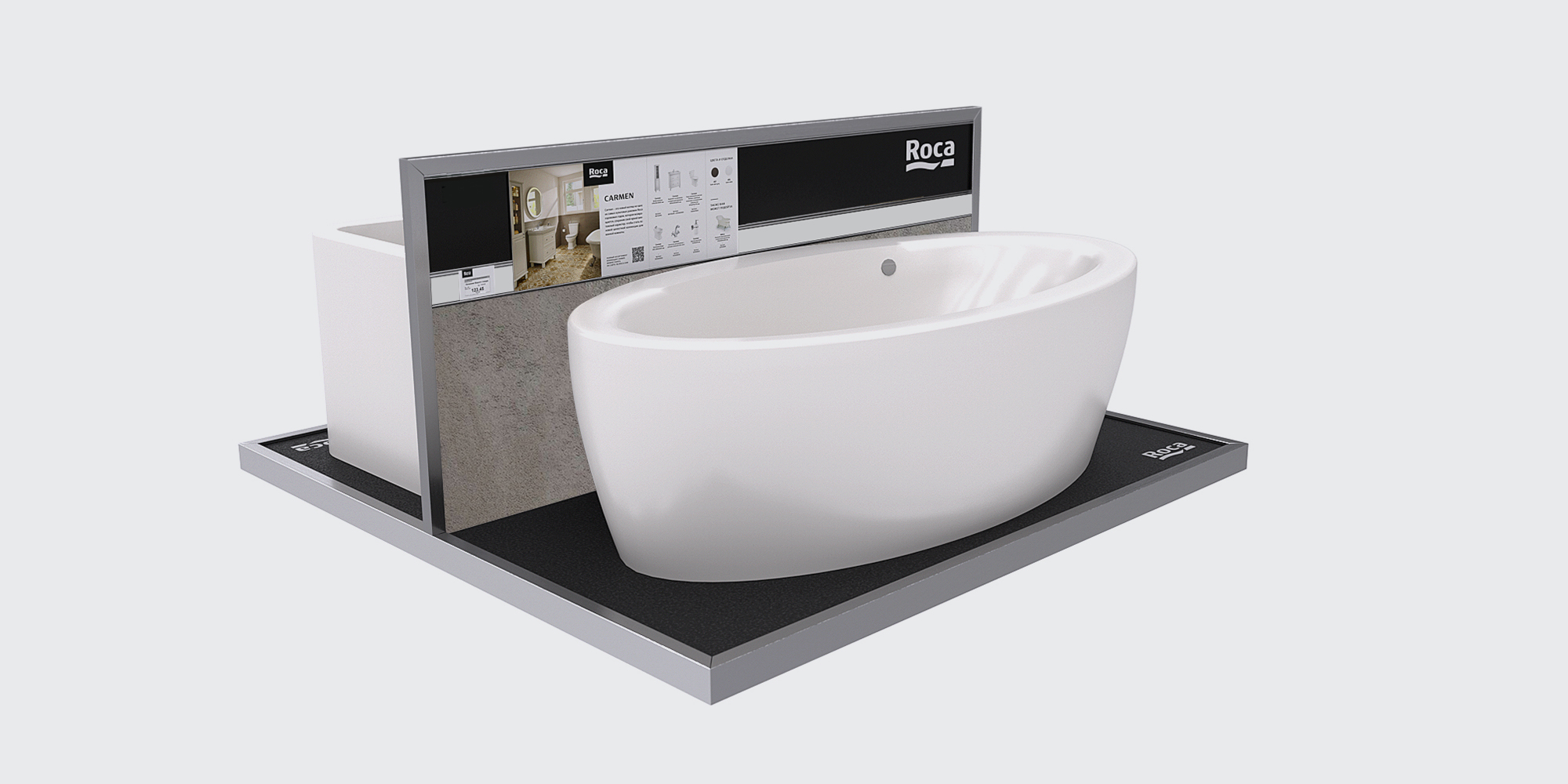 Модульная система оформления, основанная на стандартизированных демо-блоках. Каждый блок под свой тип продукта — раковины, ванны, мебель, фаянс — и оформлен в фирменном черном, в сочетании с благородными текстурами дерева и камня.