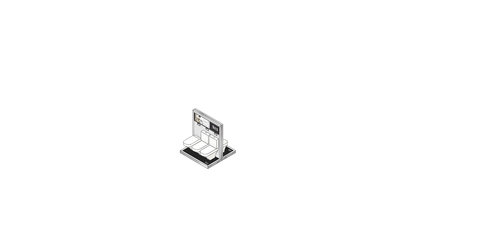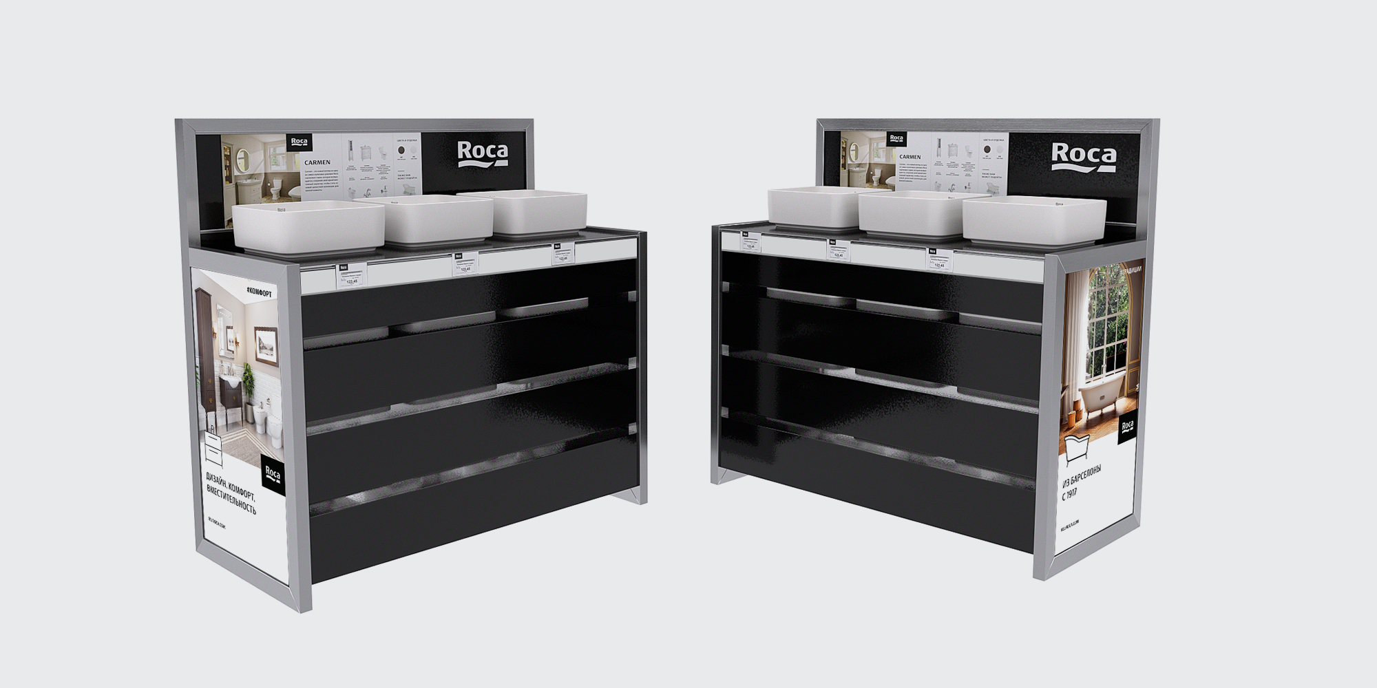 Специальная инфопанель — вставка с информацией о конкретной коллекции или модели — снимается и устанавливается в одно движение на любой из стендов — так каждый стенд доносит все о модели, сохраняя демо-блок универсальным. Сменилась экспозиция? Достаточно снять инфпанель и заменить ее другой.